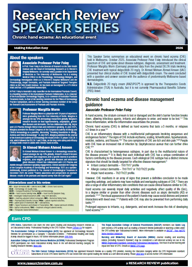 This Speaker Series summarises an educational event on chronic hand eczema (CHE) held in Melbourne, October 2025.
