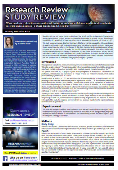 The study involved over 500 patients in nine countries and commentary is provided by Dr Diana Rubel, a consultant dermatologist in private practice at Woden Dermatology, Canberra.