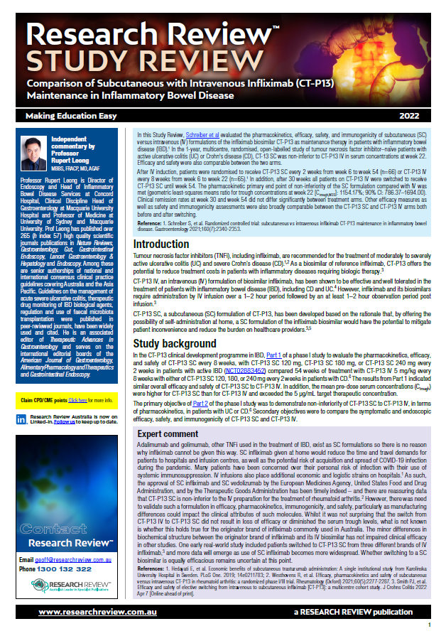 Independent expert commentary is provided by Professor Rupert Leong, Director of Endoscopy and Head of Inflammatory Bowel Disease Services at Concord Hospital, Clinical Discipline Head of Gastroenterology Macquarie University Hospital and Professor of Medicine at University of Sydney and Macquarie University.