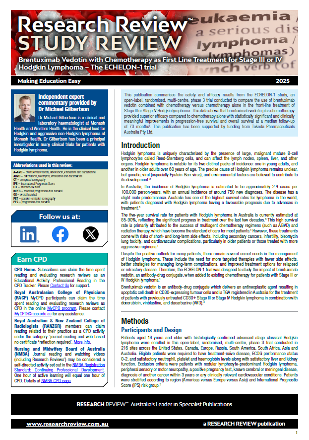 Independent commentary for the review has been provided by Dr Michael Gilbertson, clinical and laboratory haematologist at Monash Health and Western Health.