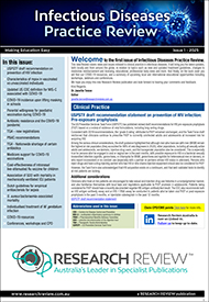 These Reviews feature key medical articles from global infectious disease journals with commentary from Professor Tony Korman. They cover topics such as antimicrobial drugs, malaria, viral encephalitis, meningitis, anti-retroviral drugs, MRSA, parasitic diseases, antimicrobial therapy and broad-spectrum antibiotics.