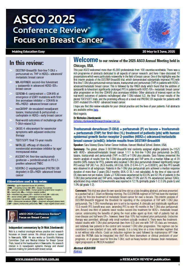 DESTINY-Breast09: first-line T-DXd + pertuzumab vs. THP in HER2+ advanced/metastatic breast cancer