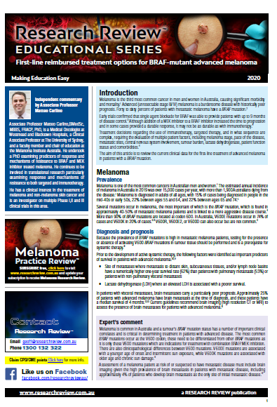 The review includes guiding commentary from Associate Professor Matteo Carlino, a Medical Oncologist at Westmead and Blacktown Hospitals and Clinical Associate Professor at The University of Sydney.