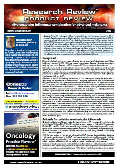 Commentary and recommendations from Dr Megan Lyle, a medical oncologist at the Liz Plummer Cancer Centre (Cairns Hospital). She previously completed a clinical research fellowship at Melanoma Institute Australia in Sydney.