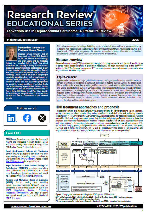Guiding commentary has been provided by Professor Simone Strasser, Head of Department and Senior Staff Specialist in the AW Morrow Gastroenterology and Liver Centre, and the Australian National Liver Transplant Unit at Royal Prince Alfred Hospital and the University of Sydney.