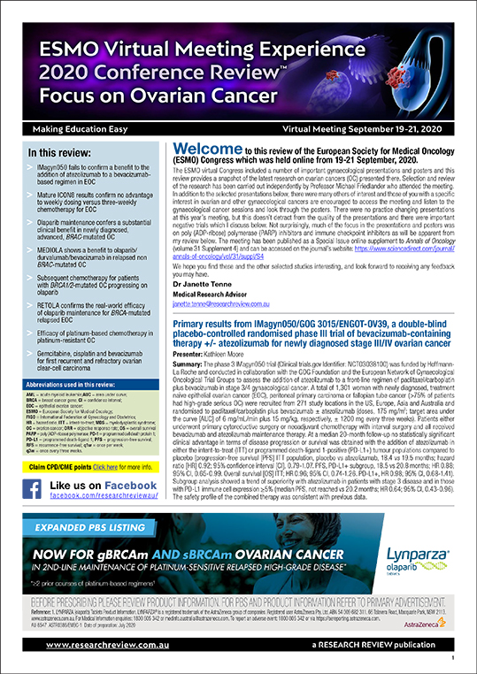 IMagyn050 fails to confirm a benefit to the addition of atezolizumab to a bevacizumabbased regimen in EOC
