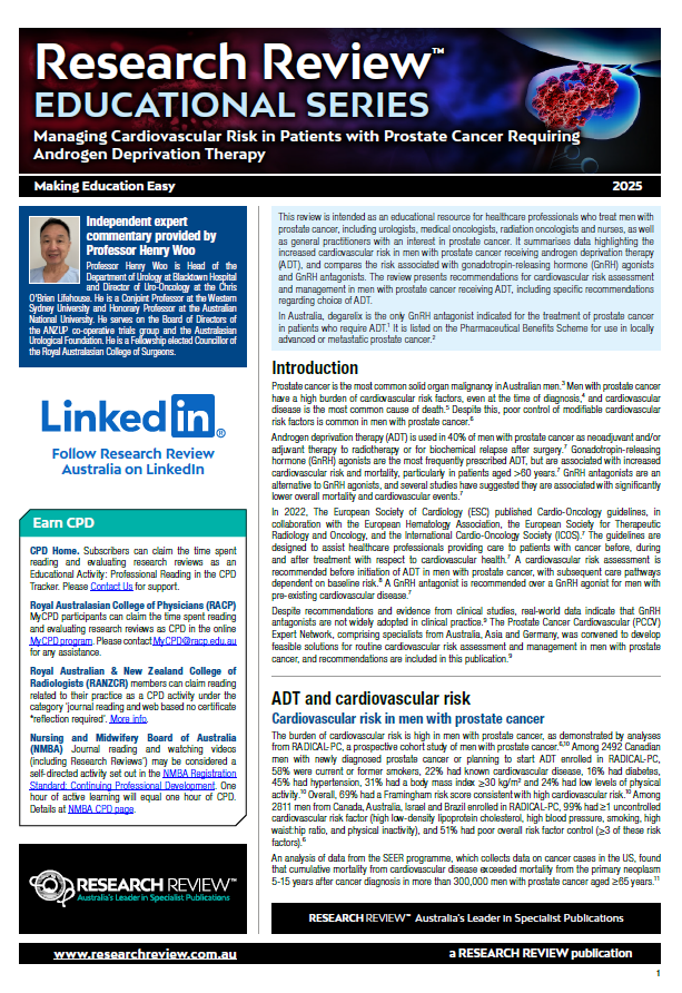 We're delighted to add our latest Educational Series titled: Managing Cardiovascular Risk in Patients with Prostate Cancer Requiring Androgen Deprivation Therapy. This Educational Review presents recommendations for cardiovascular risk assessment and management in men with prostate cancer receiving ADT, including specific recommendations regarding choice of ADT.