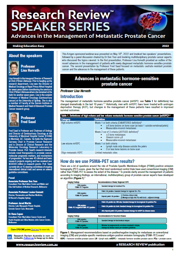 Speaker Series – Advances in the Management of Metastatic Prostate Cancer