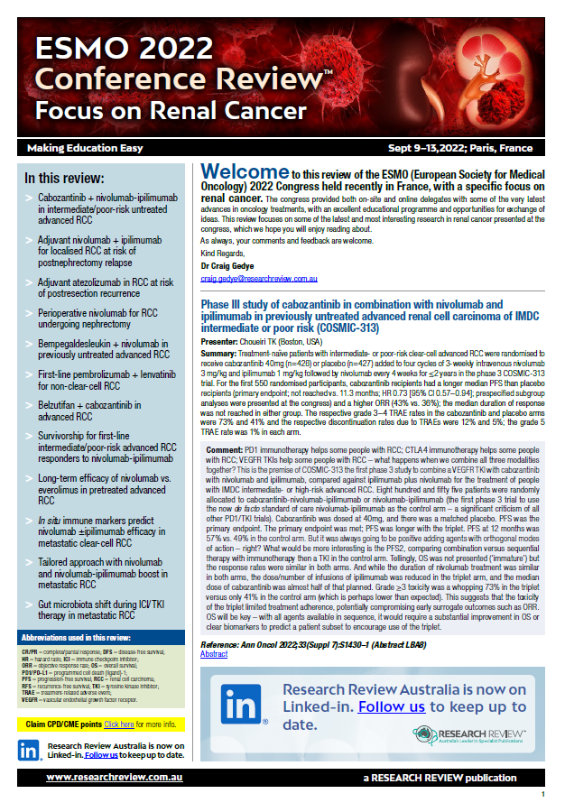 Cabozantinib + nivolumab-ipilimumab in intermediate/poor-risk untreated advanced RCC