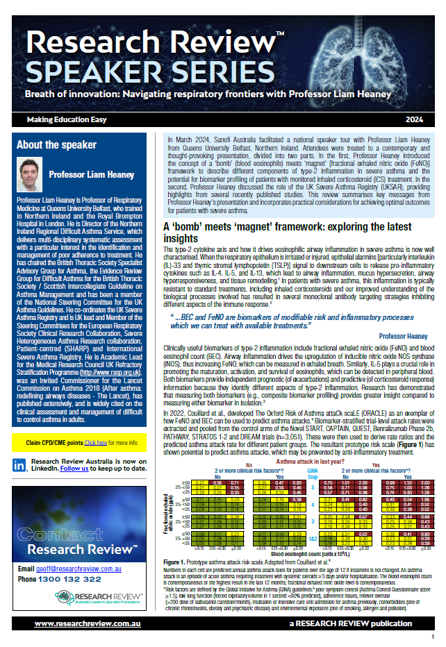 We’re delighted to add a summary of a recent presentation titled: Breath of innovation; Navigating respiratory frontiers with Professor Liam Heaney.