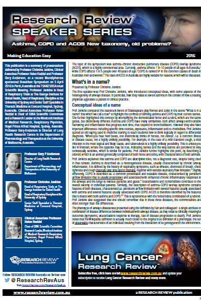 This review is a summary of presentations delivered by Professor Christine Jenkins, Clinical Associate Professor Helen Reddel and Professor Gary Anderson.