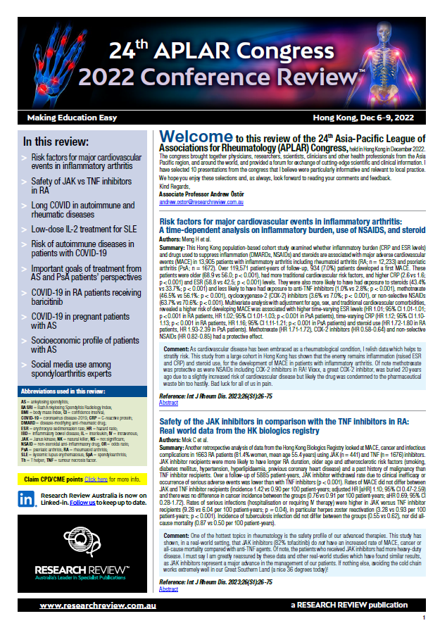 Risk factors for major cardiovascular events in inflammatory arthritis