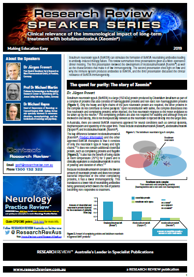 The presentation was given by Dr Michael Hayes, Head of Department of Neurology at Concord Hospital; Prof Dr Michael Martin, Professor for Immunology at the Biomedical Research Center in Seltersberg, Germany and Dr Jürgen Frevert, Past Head of Botulinum Toxin Research at Merz Pharmaceuticals in Germany.