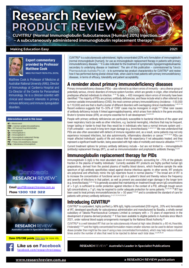 Product Review – Cuvitru – a subcutaneously administered immunoglobulin replacement therapy