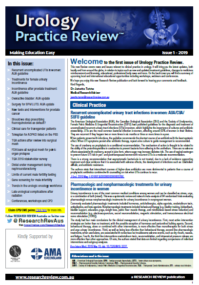 View back issues of Urology Research Review publications here. Also below are reviews of recent international medical conferences, new medicines, speaker events and other relevant publications.