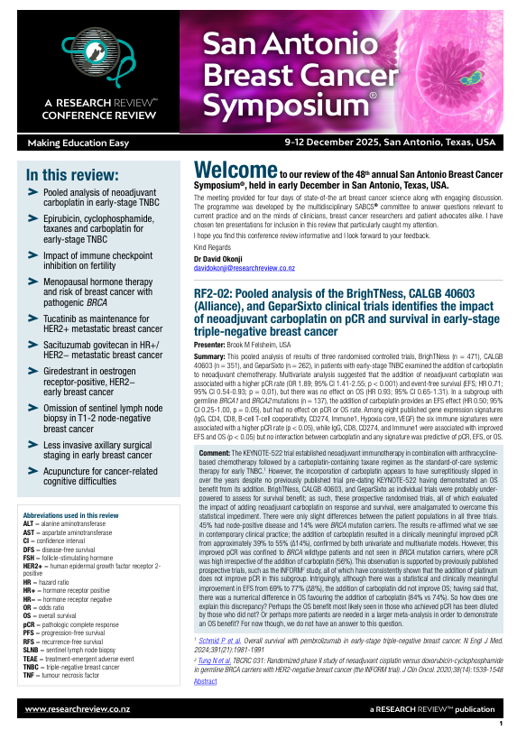 - Pooled analysis of neoadjuvant carboplatin in early-stage TNBC