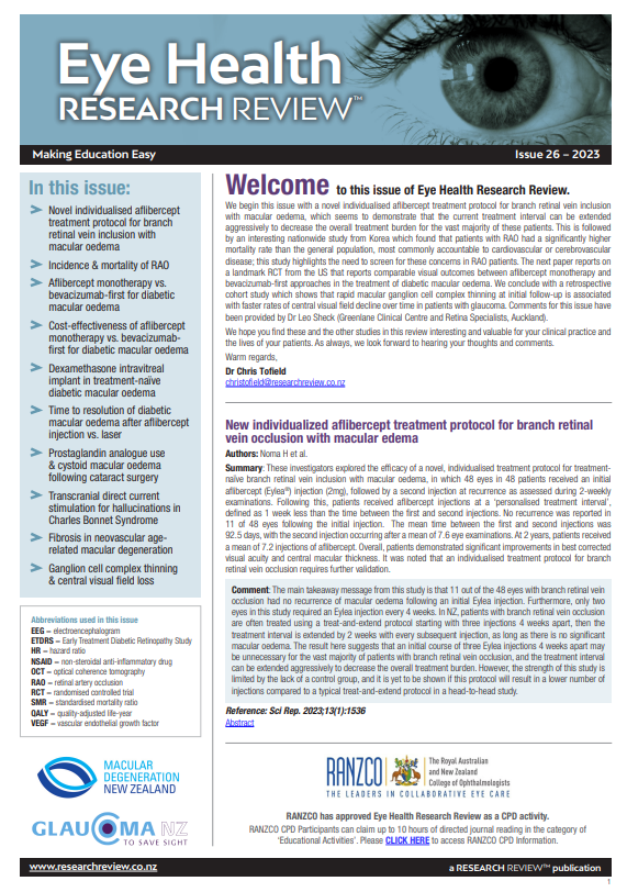 - Mortality risk with retinal vein occlusion